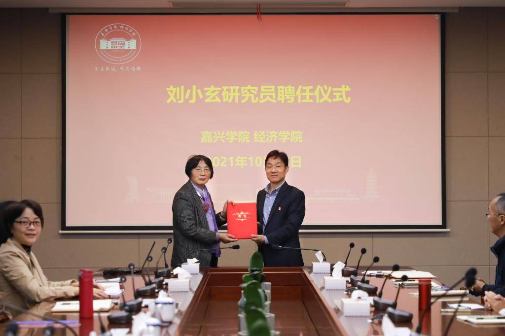 教师、联培研究生参加聘任仪式。仪式上,卢新波向刘小玄研究员颁发聘书,聘任刘小玄研究员为嘉兴学院特聘教授,作为成人短视频