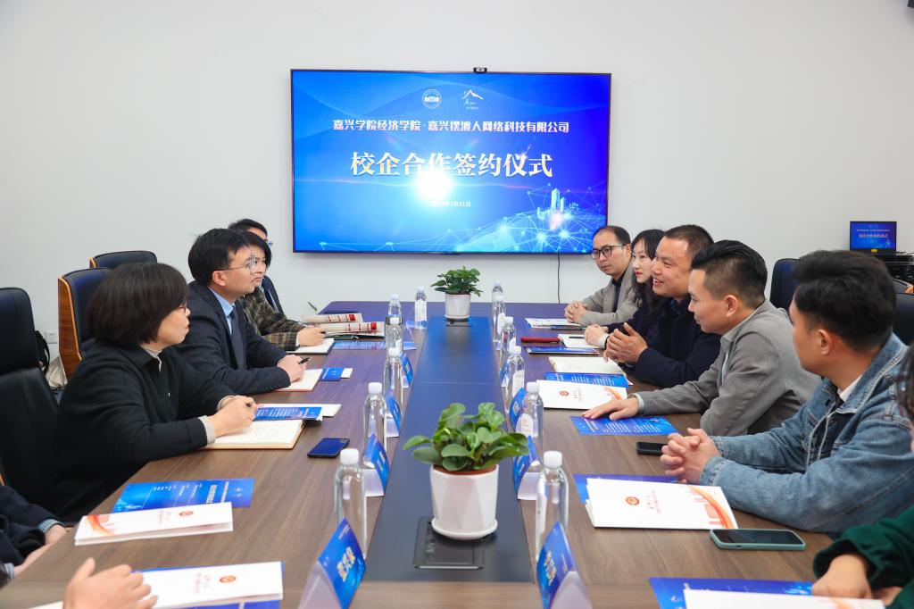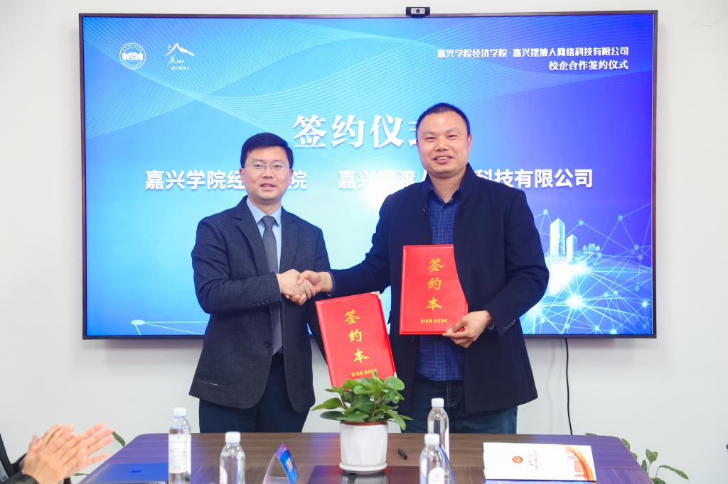 院长文雁兵和嘉兴摆渡人网络科技有限公司总经理王学成代表双方单位共同签署了《跨境电子商务人才培养校企合作协议》,并共同为“成人短视频
