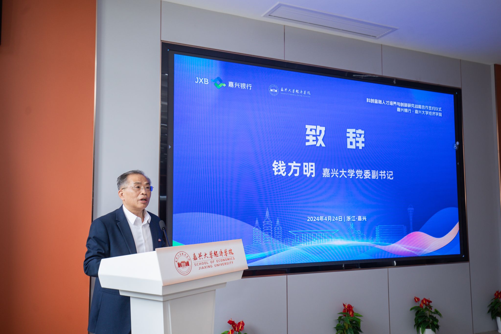 钱方明代表学校致辞,对嘉兴银行一行表示热烈欢迎,对嘉兴银行在学校发展过程中给予的支持表示衷心感谢。他指出,2023年10月,中央金融工作会议首次提出金融强国建设目标,2024年1月16日,习近平总书记在省部级主要领导干部推动金融高质量发展专题研讨班开班式上发表重要讲话强调,坚定不移走中国特色金融发展之路,推动我国金融高质量发展。走中国特色金融发展之路和金融强国建设要做好科技金融、绿色金融、普惠金融、养老金融和数字金融“五篇大文章”,科创金融是科技金融的重要内容,嘉兴作为国家科创金融改革试验区唯一的地级市,被寄予厚望,目标定位是打造长三角科技成果转化高地和科创金融一体化服务基地。嘉兴以红船精神为引领,肩负探路金融支持科技创新,为全国地市级城市推进科创金融改革、服务中国式现代化,打造科创金融“嘉兴模式”的使命。他强调,嘉兴银行是嘉兴市地方金融发展和科创金融改革试验的主力军,成人短视频 是嘉兴市金融人才培养与科学研究的主平台,双方能够发挥各自资源和优势,合作推进科创金融人才培养与科学研究等相关工作,共同助力嘉兴市建设科创金融改革试验区,为嘉兴建设长三角城市群重要中心城市和共同富裕典范城市增添新动能、做出新贡献,助力金融强国建设。