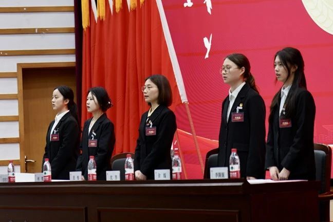 校学生会主席团成员平帅楠代表校学生会向大会表达祝贺。她强调了学生会在思想政治引领、学风建设、活动创新、权益保障等方面的重要职责,并对新一届学生委员会委员提出了加强思想意识、优化工作队伍、创新文化活动、提升服务能力的建议。