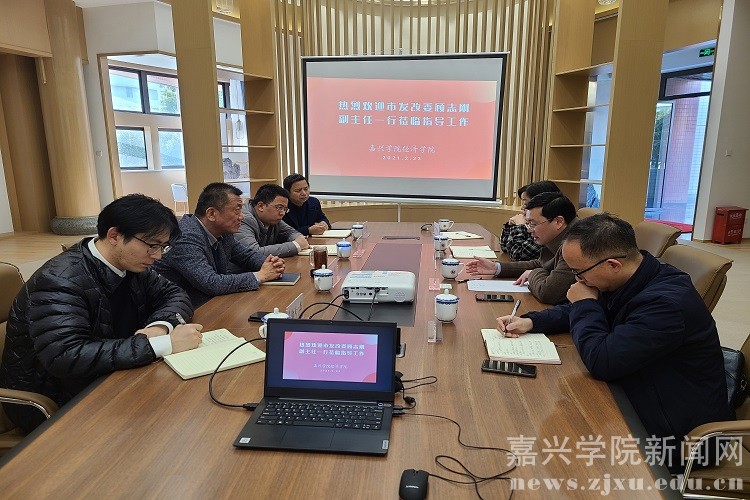 2月23日下午,嘉兴市发改委副主任顾志刚、综合处处长王迪一行来成人短视频 交流指导工作。成人短视频 院长文雁兵、党委书记施敏颖、经济系主任唐铁球、国经系主任王焕祥参加交流。