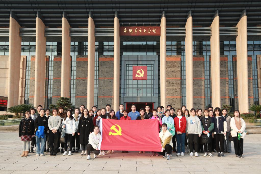 师生党员们沿着革命先辈们的足迹,参观嘉兴火车站旧址,瞻仰了当年“一大路”的历史场景;参观了狮子汇渡口中共一大代表人物雕塑群,走进南湖革命纪念馆,重温了入党誓词,接受了一场深刻的精神洗礼。