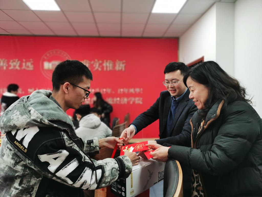 活动中,学院为同学们发放了新年慰问品和红包,送上“嘉里”人的问候。