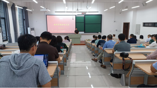院长文雁兵传达了校党委书记卢新波、校长陆军在学校中层干部读书会上的讲话精神,同时对学院上半年工作进行总结,并部署新学期工作。他强调,学院要主动适应新形势,积极融入国家、省、市及学校发展战略,顺势而为、积极应变,紧紧把握发展机遇;学院上下要统一思想,凝心聚力,争创一流业绩。他要求,全体教职工要围绕“新形势”“新理念”“新行动”“新特色”展开工作学习,积极转变发展理念,创新做好专业建设、学科建设、人才培养、社会服务、人才引育等各项工作;要把“红船精神育人”“共同富裕研究”“数字经济应用”与教学科研等工作相结合,对标学校“建一流”发展目标,创新发展、不断实现新的突破。