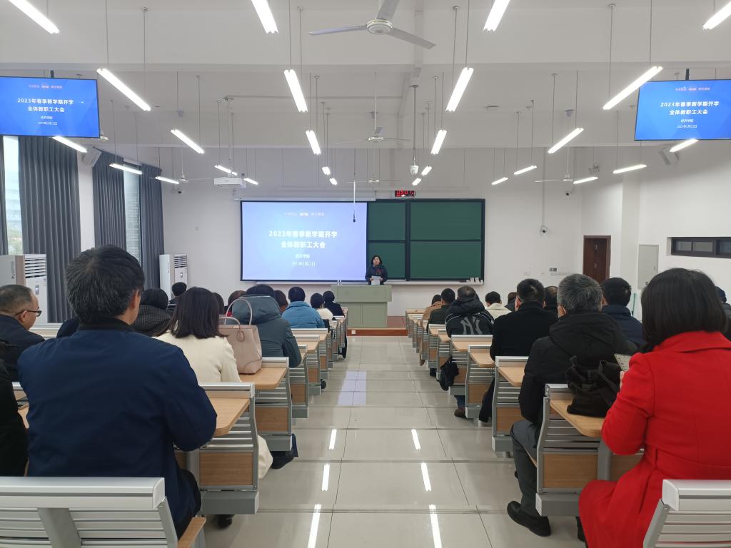 2月12日上午,成人短视频 召开新学期全体教职工大会,部署新学期学院各项重点工作。学院党委书记施敏颖主持会议,学院全体教职工参加。