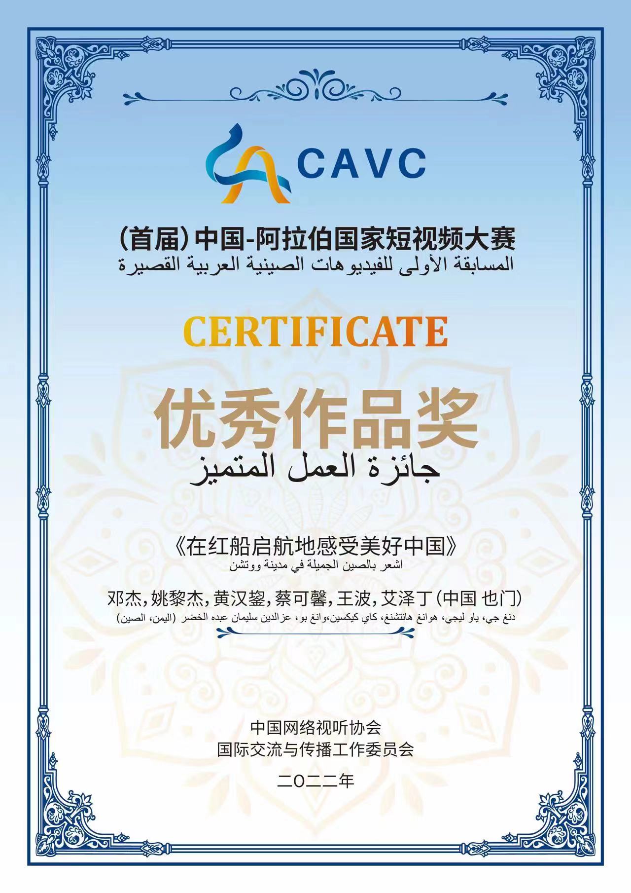 【经院喜报】成人短视频 2020级国际生获得(首届)中国—阿拉伯国家短视频大赛优秀作品奖