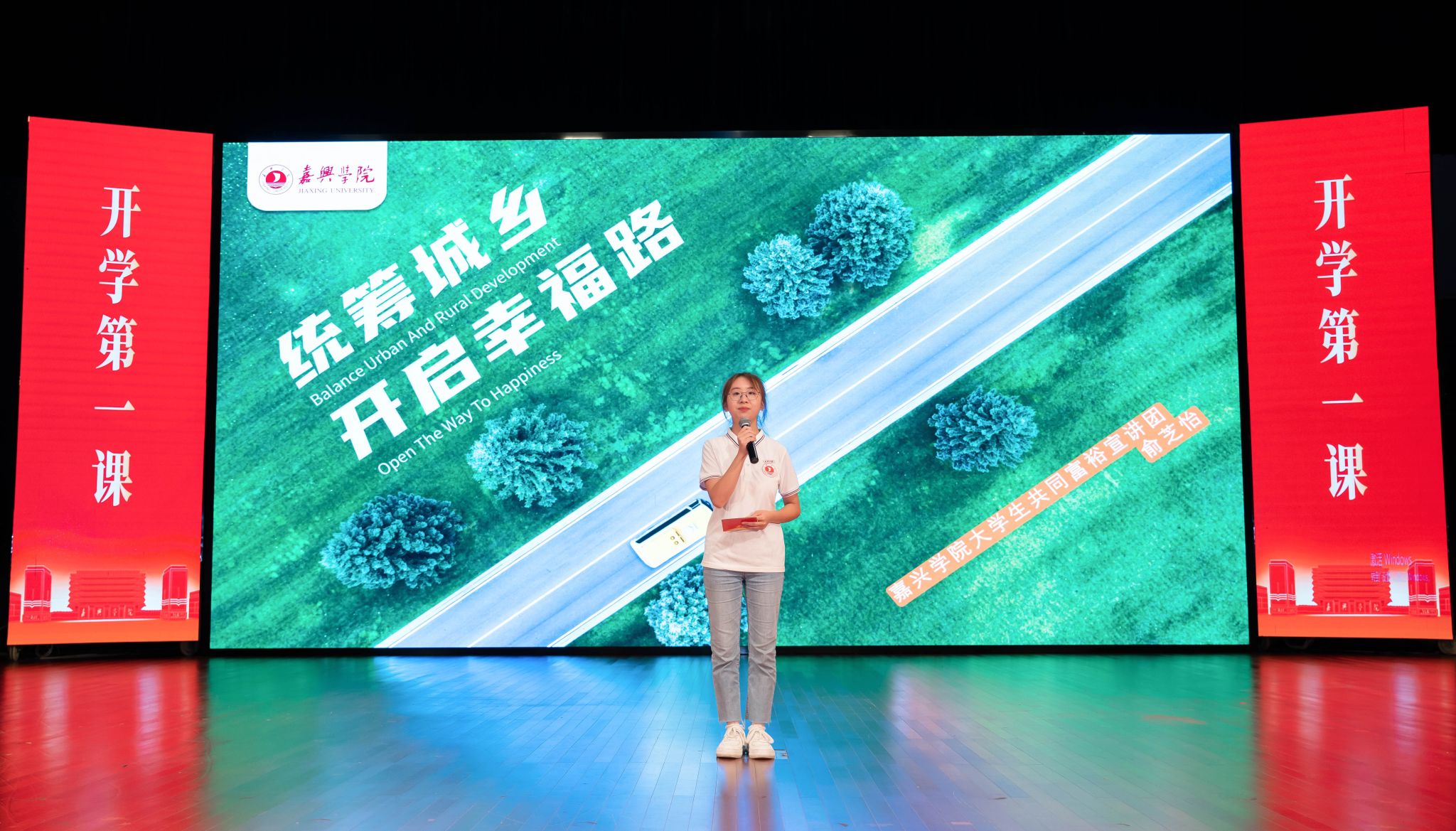 嘉兴学院大学生共同富裕宣讲团宣讲员经济221俞芝怡进行《统筹城乡开启幸福路》主题宣讲,2022年“中国大学生自强之星”奖学金获得者金融201王蓉进行《一份热 一份光 一段新旅程》主题宣讲。