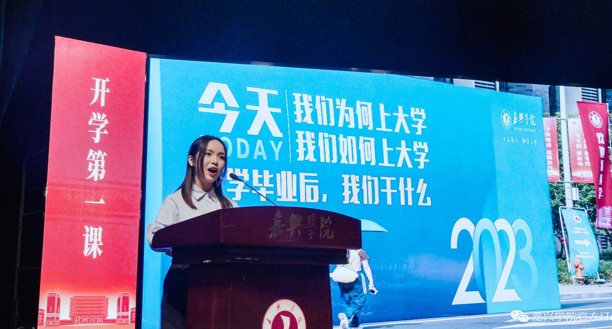 金融系老师郭红霞作为新进教师、班主任代表发言,她分享了自己的求学生涯、选择嘉兴的理由,并代表班主任们表态,立足岗位,传道授业解惑,助力成长成才。