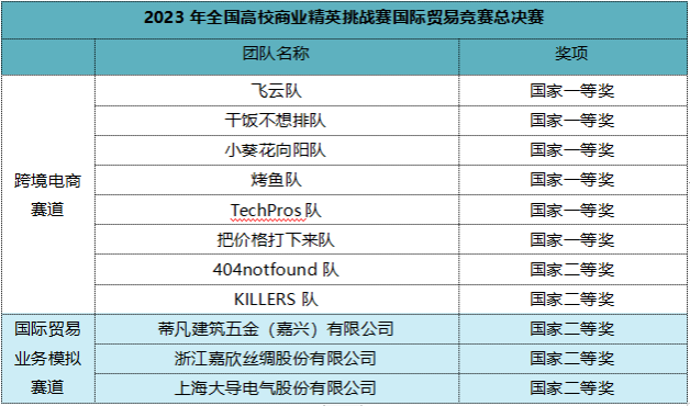 全国高校商业精英挑战赛国际贸易竞赛国际贸易业务模拟赛道是由中国国际贸易促进委员会商业行业委员会、中国国际商会商业行业商会、中国商业经济学会、中国会展经济研究会联合主办的国家级学科竞赛活动。2023年全国高校商业精英挑战赛国际贸易竞赛(国际贸易业务模拟赛道)总决赛在宁波会展中心举行,来自全国172多所院校的323支队伍参赛。各参赛队以企业(模拟出口商)名义参赛,洽谈出口。竞赛内容包括参展商业计划书、展位海报设计与商品陈列、新产品发布会、商贸配对贸易谈判四个部分,竞赛语言为英语和小语种,充分展现了外贸企业参展工作和业务全流程。