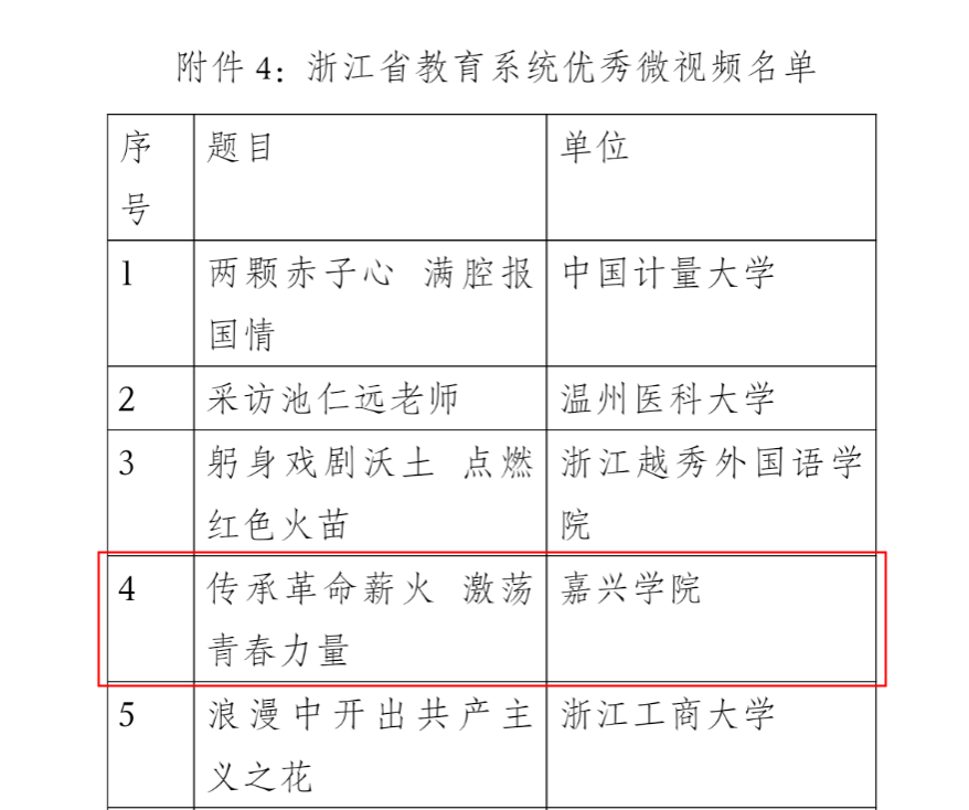 近日,浙江省教育厅关工委公布了2023年“读懂中国”活动的评选结果,由成人短视频 关工委提交的微视频作品《传承革命薪火,激荡青春力量》(作者:经济学专业刘嘉兴、谢梦莹、陈嘉敏等)获得“浙江省教育系统优秀微视频”奖。作品讲述了嘉兴市新四军历史研究会宣讲团副团长张红宇女承父业,薪火相传,在父亲的耳濡目染下,在本职岗位上建功立业,退休后又继续发挥余热,开展“沉浸式”教学,到大中小学校、社区、老年大学等开展红色传承工作,把党史故事讲到了青少年心坎上的动人事迹。