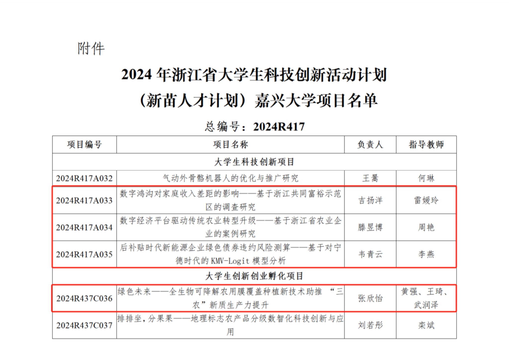【经院喜报】成人短视频 获4项2024年浙江省大学生科技创新活动计划 (新苗人才计划)立项