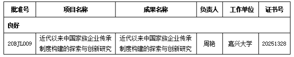 近日,成人短视频 周艳副教授主持的国家社科基金一般项目“近代以来中国家族企业传承制度构建的探索与创新研究”顺利通过验收审批,鉴定等级为良好。