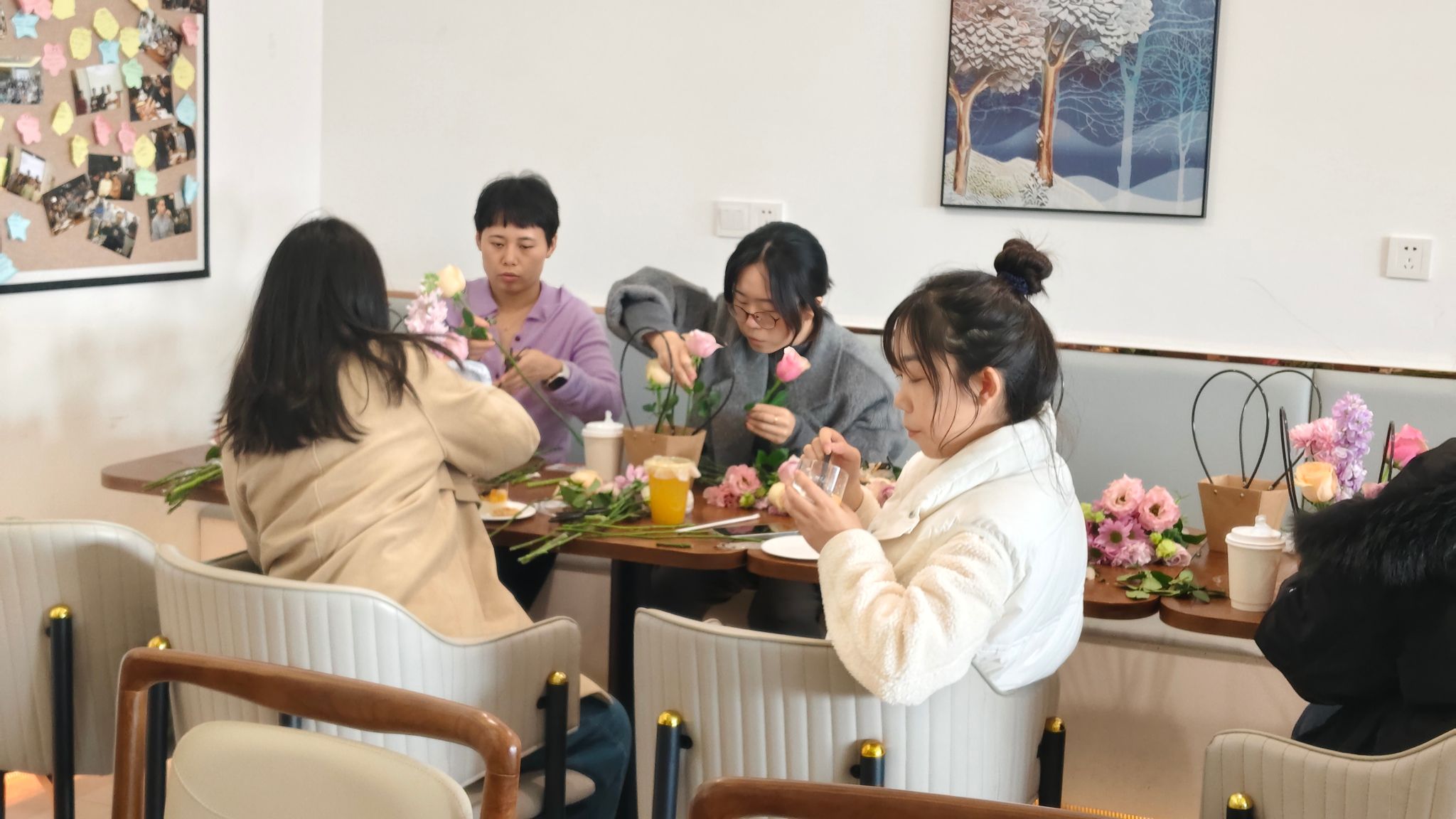 作品完成后,大家纷纷拍照留念,留下美好的瞬间。这场特别的“女神”节与繁花相逢,不仅让大家在繁忙工作中找到片刻宁静,更让大家感受到了关怀与支持。大家纷纷表示今后将以更加昂扬的斗志、更加务实的作风和更加优异的成绩,绽放“铿锵玫瑰”的独特风采,为学院事业的高质量发展贡献巾帼力量。