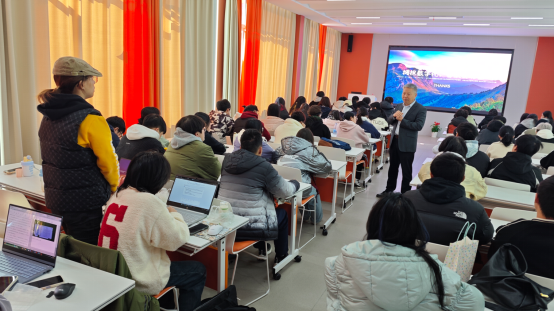 20241128日上午,嘉兴大学成人短视频 举办了第六期“南湖数字经济讲堂”。本期讲堂特邀浙江嘉特保温科技股份有限公司董事长邱靖涛作主题报告,经济学系王舟博士主持数字经济专业2023级、2024级以及经济学2024级的同学参加此次活动。