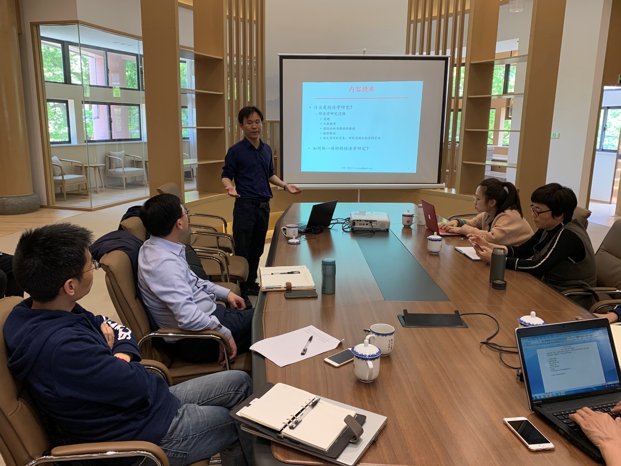 张川川研究员的报告主题为《经济学研究过程》,他从经济学研究选题和构思、文献检索、理论分析与假说的提出、假说检验、论文投稿和发表的经验等方面与老师们分享了做一项好的经济学研究应有的整个过程和方法。张川川研究员特别强调,一项好的经济学研究离不开好的选题,一篇文章的选题是整个研究过程中最重要,也是最难的一部分。好的选题应该要提出一个具体的研究问题,同时要具有重要性、有趣性和可行性三个基本特征。