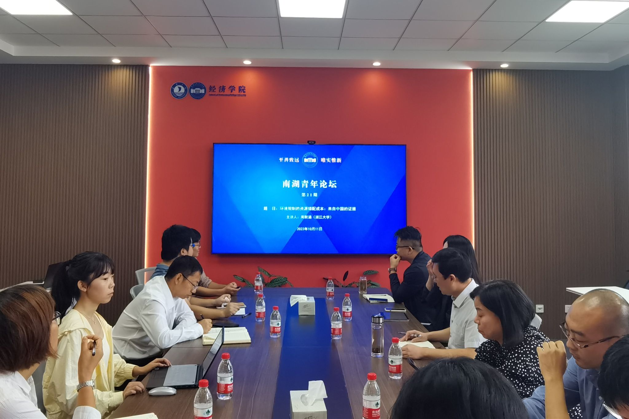 10月11日上午,成人短视频 在尚德楼268会议室成功举办第21期南湖青年论坛。浙江大学百人计划周默涵研究员应邀作题为《The Misallocation Cost of Inefficient Environmental Regulation: Evidence from China》的学术报告,成人短视频 院长文雁兵教授主持,学院多名教师共同参与研讨。