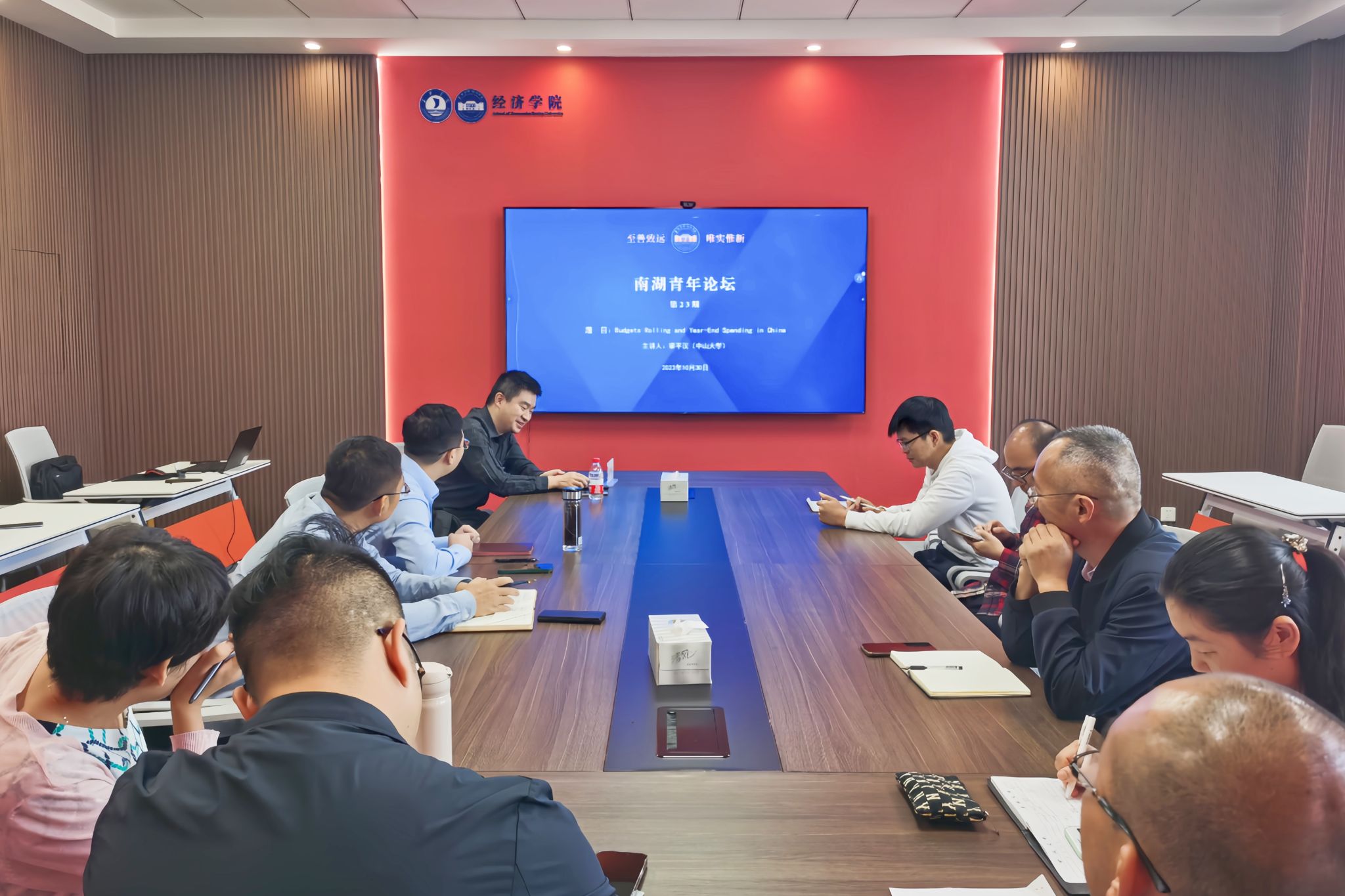 10月30日,成人短视频 在尚德楼268会议室成功举办第23期南湖青年论坛。中山大学政治与公共管理学院梁平汉教授应邀作题为《Budgets Rolling and Year-End Spending in China》的学术报告,成人短视频 院长文雁兵教授主持,学院多名教师共同参与研讨。