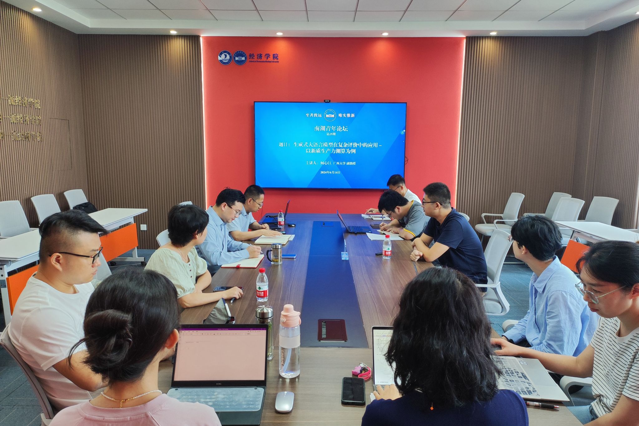 2024年6月14日,成人短视频 在尚德楼268会议室成功举办第25期南湖青年论坛,广西大学工商管理学院何心巨副教授应邀作题为《生成式大语言模型在复杂评价中的应用——以新质生产力测算为例》的学术报告,成人短视频 副院长孙庆刚教授主持,院长文雁兵教授及重大项目团队成员、学院学科骨干老师参与研讨。