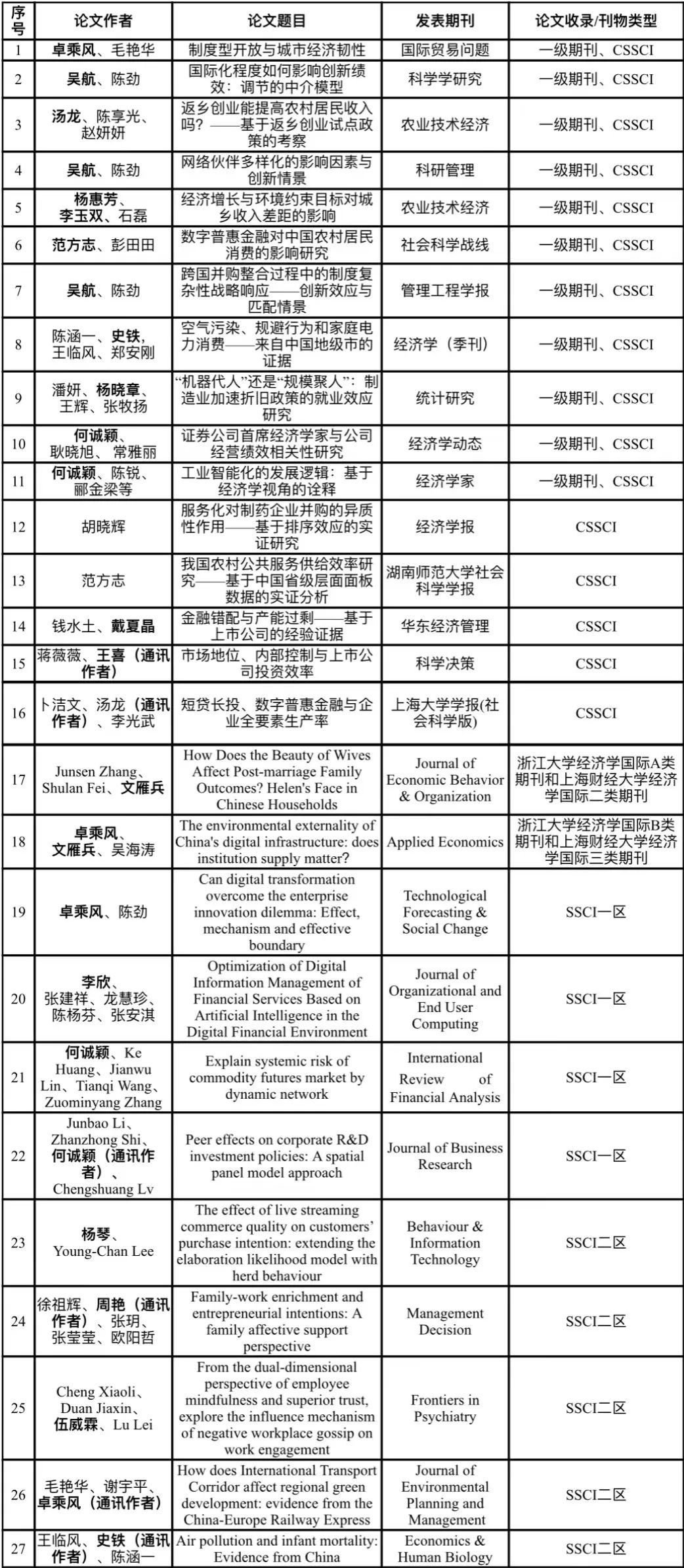 近年来,学院内培外引建设高水平科研团队,改革创新高水平成果培育机制,营造风清气正的良好环境,形成比学赶超的浓郁氛围,把国之所需、院之所能、己之所长结合起来,围绕共同富裕、数字经济、科创金融等理论与现实问题,有组织开展学术研究、社会服务、决策咨询,2023年度高水平论文发表再创新高是全院教师积极进取、奋发向上的硕果!