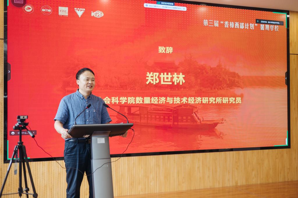郑世林研究员在致辞中介绍“香樟西部计划”的缘起、发展、现状以及其影响。他表示,中西部地区高校在师资、平台、资源等方面相较东部地区有一定差距,东部地区有责任为中国经济学青年人才培养和中西部地区发展所需人才培养做出贡献,“香樟西部计划”因此诞生。嘉兴是东部发达城市和长三角城市群重要中心城市,是浙江省高质量发展建设共同富裕示范区中的典范城市,区位条件优越、发展经验丰富、人文历史厚重、生态环境优美,特别适合西部地区的学子走一走、看一看,在学习理论知识的同时,也能实地了解东部地区的发展面貌。他强调,“香樟西部计划”暑期学校的学员除了本科生、硕士生和博士生,还有西部地区高校青年教师和博士后研究人员,它不仅仅是针对西部地区学子的一次公益性学习项目,更是对西部地区高校青年教师的“二次充电”,对西部高校经济学教育和学科发展也具有深远意义。最后,他希望“香樟西部计划”暑期学校未来能够为西部地区人才培养做出更多贡献,并鼓励大家胸怀理想、感人奋进、扎根西部、服务西部。