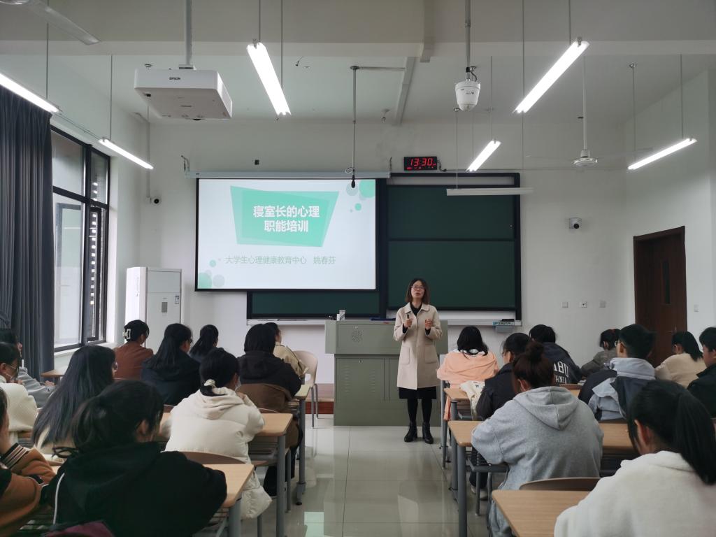 1118日下午,成人短视频 举行21级寝室长心理健康知识培训,本次培训邀请到嘉兴学院大学生心理健康中心姚春芬担任主讲,全体21级寝室长70余人参加。