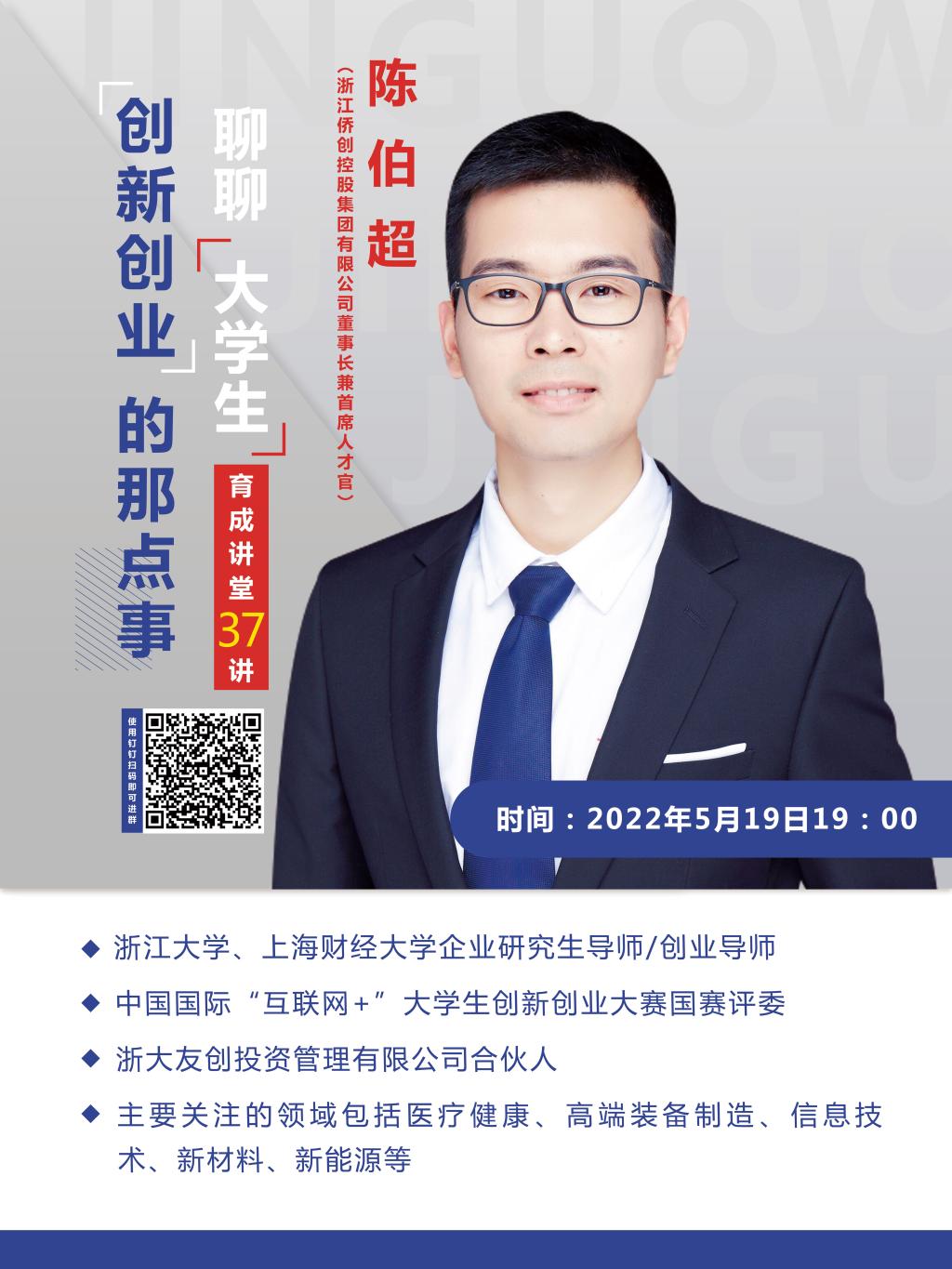 519日晚,浙江侨创控股集团有限公司董事长兼首席人才官、中国国际“互联网+”大学生创新创业大赛国赛评委陈伯超应邀作客育成讲堂第37讲,为近500名师生作题为“聊聊大学生创新创业的那点事”的云讲座。此次云讲座由创业学院主办、成人短视频 承办。