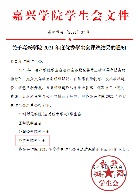 近日,在嘉兴学院2021年度优秀学生会评选中,经材料评审与公开答辩两个环节,成人短视频 学生会被评为“嘉兴学院2021年度优秀学生会”。