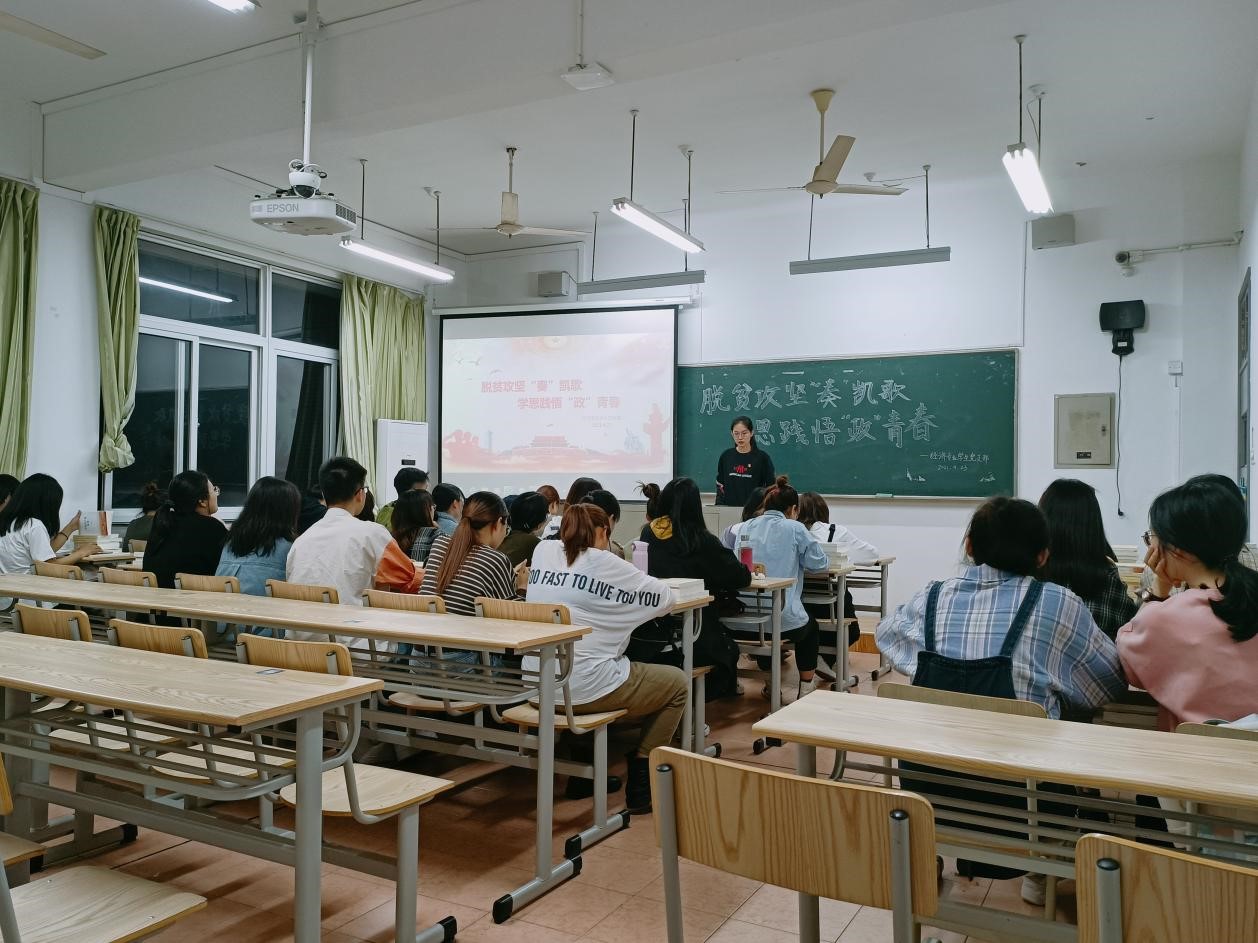 2021年4月23日晚,嘉兴学院成人短视频 经济专业学生党支部在教一402开展了以“脱贫攻坚奏凯歌,学思践悟政青春”为主题的理论学习。本次活动由陶玥怡同志主持,支部梅嘉琦老师及支部全体学生党员共同出席。