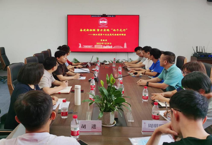 为深入学习贯彻省第十五次党代会精神,进一步理解和准确把握省党代会精神的核心要义和丰富内涵,7月29日上午,成人短视频 特邀浙江省委党校(浙江行政学院)社会学文化学教研部(浙江舆情研究中心)副主任董敬畏为学院党委理论学习中心组成员和师生代表作题为“奋进新征程,努力实现‘两个先行’——浙江省第十五次党代会精神解读”的专题辅导报告。报告会由成人短视频 党委书记施敏颖主持。