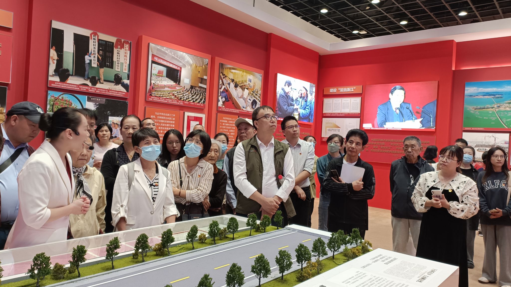 大潮起钱塘,大道汇之江。2003年7月,时任浙江省委书记习近平指出,要进一步发挥八个方面的优势、推进八个方面的举措,即“八八战略”,指引浙江走出改革创新开放图强之路,而浙江精彩蝶变的20年,就浓缩在本次大型主题展览中。综合展区分为伟大擘画、精彩蝶变、勇立潮头三部分;地方展区集中展示11个设区市忠实践行“八八战略”的生动实践。一张张生动的历史图片、一段段精彩的视频资料,带领大家走入一段“时空之旅”,师生共同感受真理力量和实践伟力。在地方展区,嘉兴从“初心之地”“枢纽之地”“和美之地”三大维度,讲述20年来在“八八战略”指引下经济社会发展取得的巨大成就,更是引起了师生的强烈共鸣。